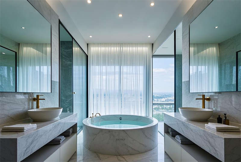 本項目為 3000 平米城市商務酒店整體設計方案,采用現代輕奢風格貫穿所有空間。設計團隊以 ' 城市會客廳 ' 為核心理念,通過淺金色、米白色與深胡桃木的經典搭配,營造高端商務氛圍。大堂采用弧形水晶燈組與大理石水景墻形成視覺焦點,客房配備智能控制系統實現科技與舒適融合。餐飲區設置特色中餐廳包間與行政酒廊,分別體現東方美學與國際元素。會議室配備最新智能會議系統,滿足商務需求。特別設計屋頂無邊際泳池,將城市天際線融入休憩空間。整體方案注重功能分區合理性,在 3000 平米內實現接待、住宿、餐飲、會議等完整酒店功能,通過統一的設計語言確保各空間風格連貫,同時運用隱藏式收納系統提升空間利用率。